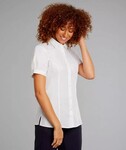 Princess line uniform blouse, with a neat collar, side vents and softly ruched short sleeves. Enya works in so many environments & situations- elegance & day long style guaranteed!